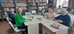 На очередном заседании клуба «Волшебная иголочка» участницы с увлечением продолжили работу над изящным браслетом, искусно вышивая его бисером — каждый стежок дарил радость творчества, а дружеские беседы создавали по‑настоящему уютную атмосферу, в которой работа шла легко и вдохновенно.